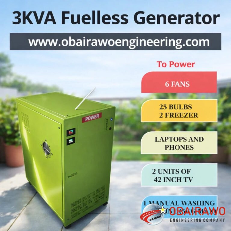 No Fuel, No Noise, No Stress: Meet the Obairawo 10kVA Fuelless Generator