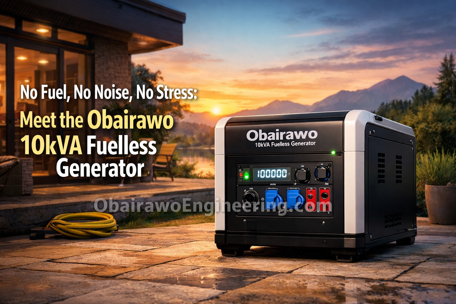 At Obairawo Engineering Limited, we decided years ago that "this is just how it is" wasn't a good enough answer. We set out to redefine how homes and businesses in Nigeria and across Africa consume energy. Today, I am incredibly proud to introduce you to the powerhouse of our lineup: the Obairawo 10kVA Fuelless Generator.